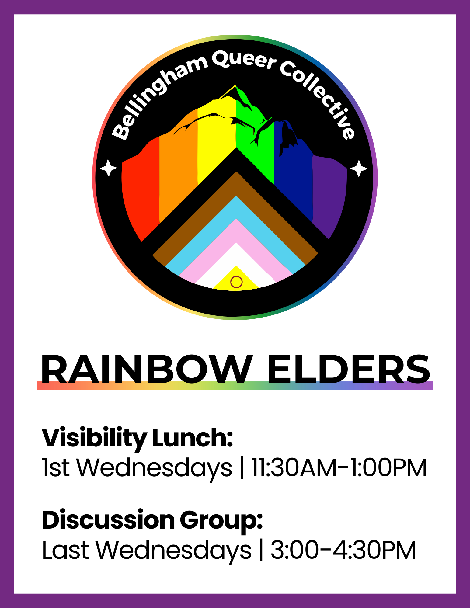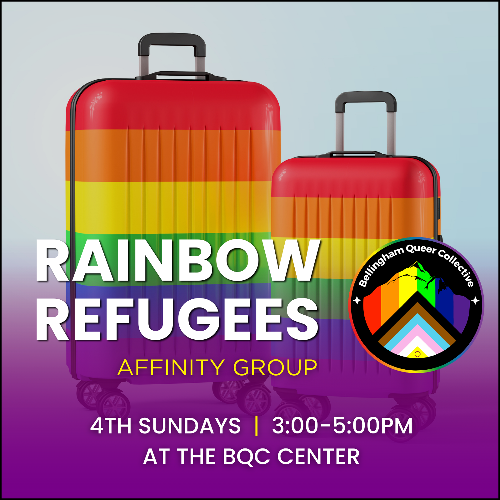 This is a group for Rainbow Refugees, 2SLGBTQIA+ people who have moved here from red areas. We will discuss things like being new to Bellingham, dealing with moving/starting over, survivor’s guilt, and getting used to being in a safer area.
