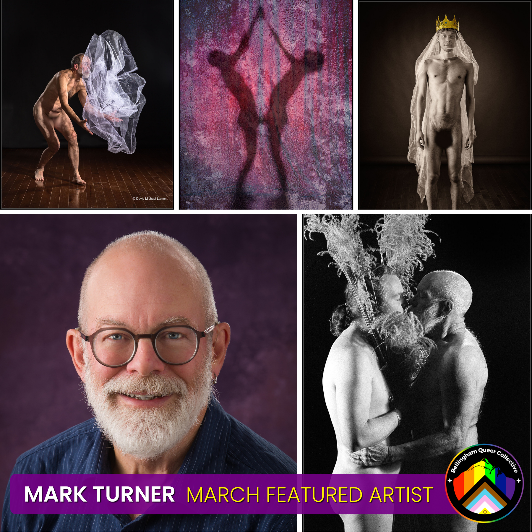 A little over 10 years ago, Mark began photographing the male nude. He was struggling internally with the idea that he might be gay after nearly 35 years in a happy heterosexual marriage. Working with male models and with himself in front of the camera, he began to be more comfortable both with his body and with being gay. He learned about the Seattle Erotic Art Festival, entered his work, and the jurors accepted some of it for display. The pieces in this exhibit at the Bellingham Queer Collective have either been shown at SEAF or submitted to the jury but not selected.