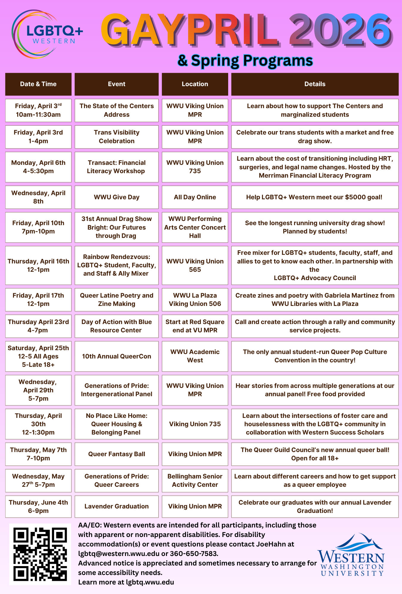 Check out the many events that LGBTQ+ Western will be hosting throughout April! All of our intergenerational community members are invited to attend.